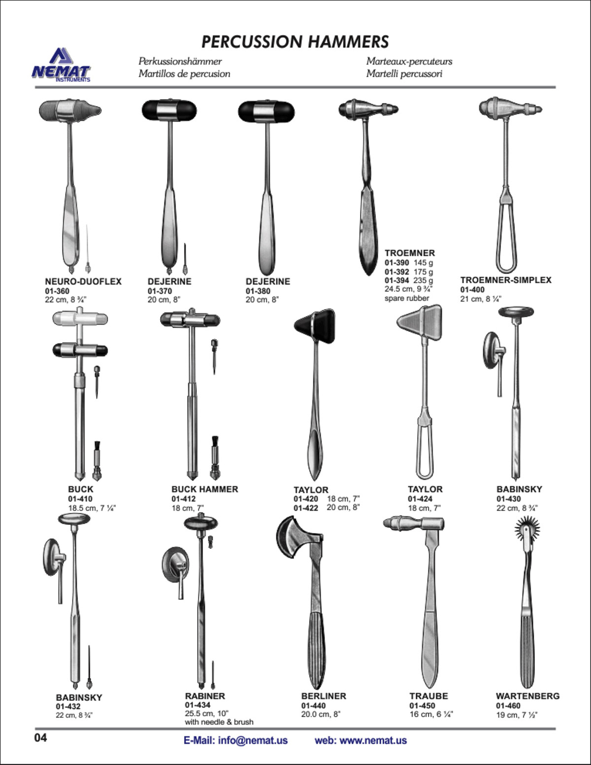 Buy Neuro-Duoflex Hammers, Dejerine Hammers, Troemner Percussion Hammers With Spare Rubber, Troemner-Simplex Hammers, Buck Hammers, Taylor Hammers, Babinsky Hammers, Babinsky Hammers, Rabiner Hammers With Needle & Brush, Berliner Hammers, Traube Hammers, W