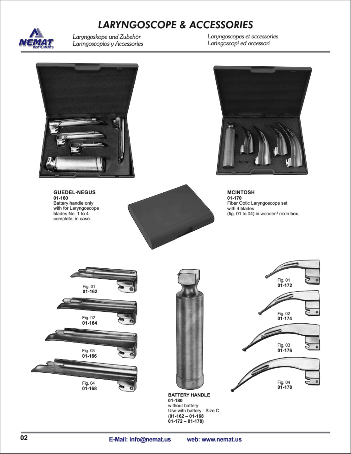 - 01-170 MCINTOSH Fiber Optic Laryngoscope set with 4 blades (fig. 01 to 04) in wooden/ rexin box.