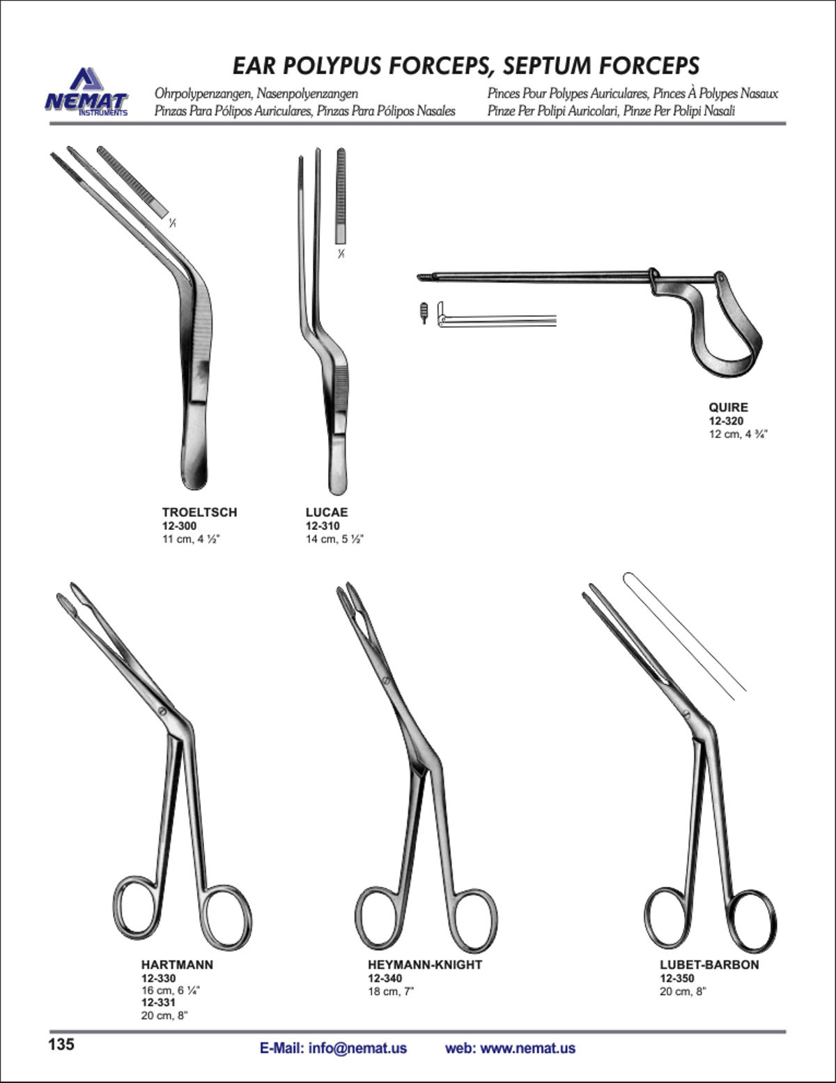 Ear Polypus Forceps, Septum Forceps Trusted suppliers of the good quality Ear Polypus Forceps, Septum Forceps, Troeltsch 11cm, Lucae 14cm, Quire 12cm, Hartmann 16cm, Hartmann 20cm, Heymann-Kinght 18cm, Lubet-Barbon 20cm SKU: P135 Stock Status: Available Ask Quote Instant Quote Request by WhatsApp Description 12-300 TROELTSCH 11 cm, 4 ½” 12-310 LUCAE 14 cm, 5 ½” 12-320 QUIRE 12 cm, 4 ¾” 12-330 HARTMANN 16 cm, 6 ¼” 12-331 HARTMANN 20 cm, 8” 12-340 HEYMANN-KNIGHT 18 cm, 7” 12-350 LUBET-BARBON 20 cm, 8”