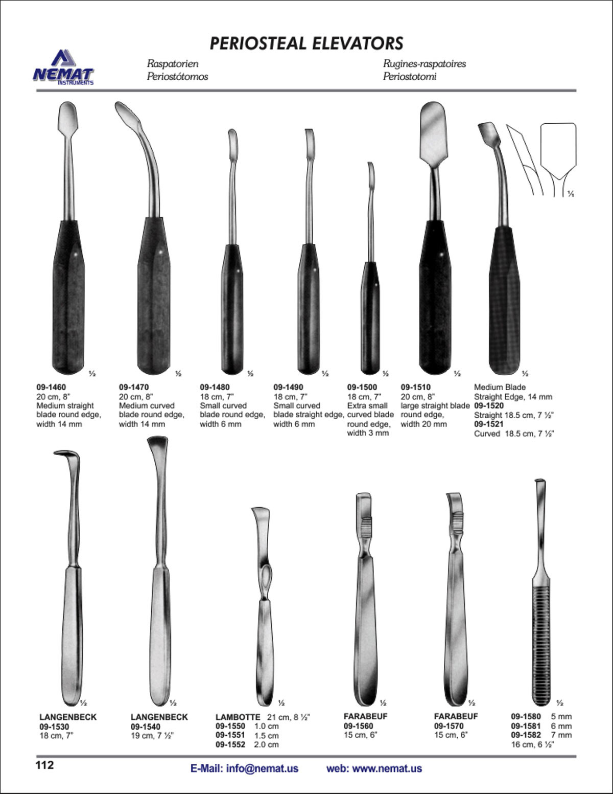 - 09-1490 18 cm, 7” Small curved blade straight edge, width 6 mm