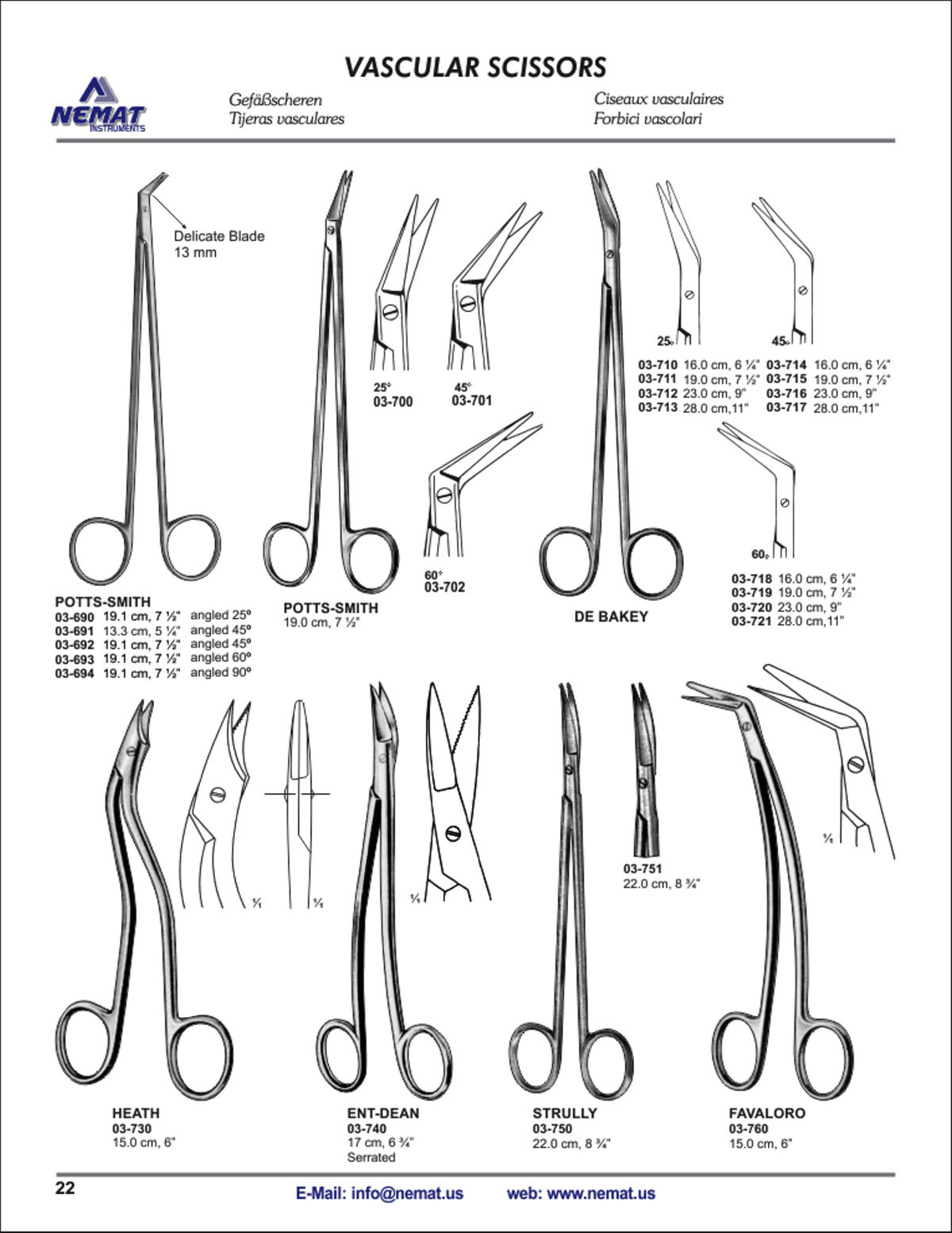 - 03-700 POTTS-SMITH Scissors 19.0 cm, 7 ½” angled 25º